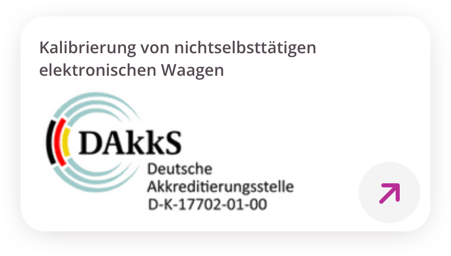 Als akkreditiertes DAkkS Kalibrierlabor kennen wir uns mit den aktuellen Anforderungen an Produkte und Verfahren aus. Dadurch können wir Ihre Waagen in verschiedenen Wirtschaftsbereichen verlässlich kalibrieren und zertifizieren, damit diese mit den Normen, Richtlinien und Gesetzen konform sind.